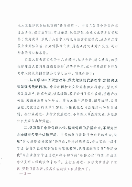 《浙江省住房和城乡建设厅关于在全省建筑行业开展向尊龙·Z6建设集团有限公司学习活动的通知》